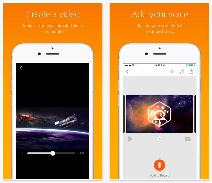สำหรับท่านที่ยังไม่รู้จักแอพพลิเคชั่นนี้ อะโดบีใช้ประสบการณ์กว่าสามสิบปีทางด้านอนิเมชั่นและภาพยนตร์ที่เรามีใส่เอาไว้ในแอพพลิเคชั่น Adobe Voice ตัวนี้ เพื่อให้ทุกคนสามารถสร้างสรรค์วิดิโอที่ดึงดูดใจเพื่อแชร์ให้โลกได้รับรู้ได้ด้วยตัวเอง ไม่ว่าจะมีประสบการณ์ทางด้านนี้หรือไม่ก็ตาม เพียงแค่ดาวน์โหลดแอพ Adobe Voice for iPhone จากแอพสโตร์เท่านั้น และหากท่านเคยใช้แอพพลิเคชั่นนี้บนไอแพดอยู่แล้ว งานทุกชิ้นของท่านจะถูกซิงค์มาอยู่ในแอพ Adobe Voice บนอุปกรณ์อื่นเพื่อให้ท่านสามารถทำงานกับวิดิโอของท่านต่อได้ทุกที่ทุกเวลาที่ต้องการโดยอัตโนมัติ
