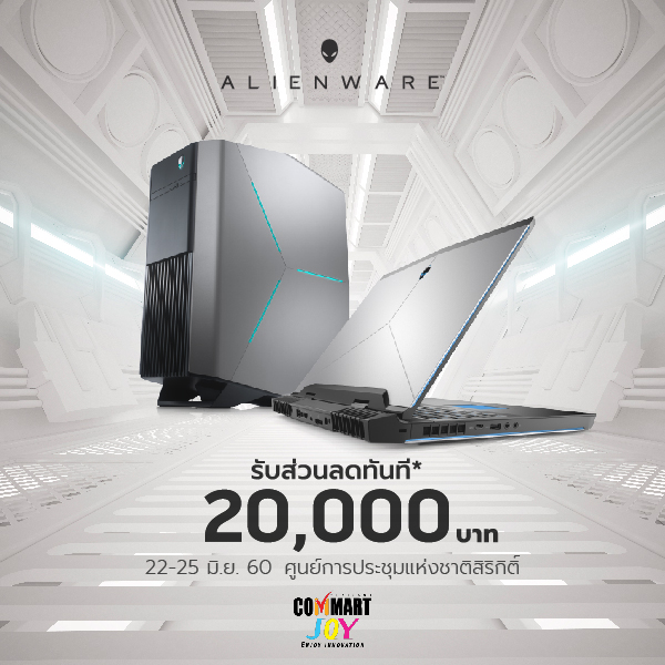 นอกจากนี้สำหรับคอเกม พลาดไม่ได้กับ Alienware ไฮไลท์ของงาน ที่มาพร้อมโปรของแถมและส่วนลด ที่ทำให้ฟินรัวๆกันได้ทั้งงาน มูลค่ากว่า 20,000 บาท พิเศษสุด สำหรับ Core i5 รับฟรี AW Gift box และ Core i7 รับฟรี DXRacer Chair รุ่น FH08 (ของมีจำนวนจำกัด) เตรียมช้อปกันได้ตั้งแต่วันที่ 22 – 25 มิถุนยน ศกนี้ ในงาน Commart joy 2017 ณ บูธ P4 Plenary hall ศูนย์ประชุมแห่งชาติสิริกิติ์