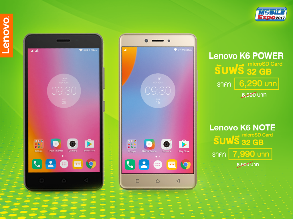 - เมื่อซื้อ Lenovo K6 Note สมาร์ทโฟนตระกูล K6 Series ที่มาพร้อมสเปคแรงจัดเต็ม การันตีแบตเตอรี่อึดทะลุขีดตอบสนองไลฟ์สไตล์สุดชิคที่ไม่เคยหยุดนิ่ง ราคา7,990 บาท หรือ Lenovo K6 Power สุดยอดสมาร์ทโฟนที่ตอบโจทย์ความคุ้มค่า คุ้มราคา เพียง 6,290 บาท รับฟรีทันที ! Micro SD Card ความจุสูงถึง 32 GB เพื่อให้ผู้ใช้งานดื่มด่ำกับความบันเทิงได้ อย่างไร้ขีดจำกัด