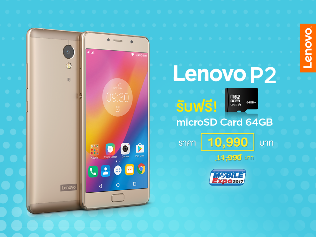 - เมื่อซื้อ Lenovo P2 สุดยอดสมาร์ทโฟนประสิทธิภาพสูงและแบตเตอรี่อันทรงพลังที่รองรับการใช้งานได้สูงถึง 3 วัน เหมาะสำหรับผู้ที่มองหาการใช้งานแบบNon-stop ด้วยราคาเพียง 10,990 บาท รับฟรีทันที ! Micro SD Card 64 GB ทำให้มีความจุสูงถึง 96 GB ( 32 GB+ 64 GB) ขยายพื้นที่จัดเก็บอย่างเต็มอิ่มกับประสบการณ์ทางความบันเทิง ไม่ว่าจะ เล่นเกมส์ ดูหนัง ฟังเพลงก็ไม่มีสะดุดอย่างแน่นอน อีกทั้งฟิล์มกันรอยและเคสจากเลอโนโว