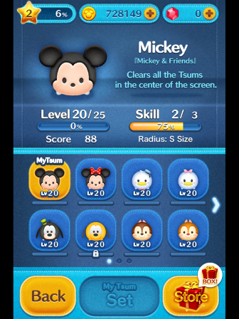 ในเกม LINE: Disney Tsum Tsum (ไลน์: ดิสนีย์ ซูม ซูม) ซึ่งแปลว่า “ดิสนีย์ สแต็ค สแต็ค” (การนำตุ๊กตาของดิสนีย์มาซ้อนทับกันหลายๆตัว) ผู้เล่นจะต้องเชื่อมต่อและทำลายตัวละครของดิสนีย์ “ซูม” ให้ได้มากที่สุดภายในเวลาหนึ่งนาที ยิ่งทำลายตัวซูมในแต่ละเลเวลได้มากเท่าไหร่ ก็จะได้คะแนนสูงขึ้นเท่านั้น ในขณะเล่นเกม ผู้เล่นจะต้องเก็บตัวซูมของทั้งดิสนีย์ และดิสนีย์ พิกซาร์ อาทิเช่น มิกกี้ มินนี่ สติทช์ และบัซ ไลท์เยียร์ แต่ละตัวละครที่สะสมได้ จะช่วยเพิ่มเลเวล และมีสรรพคุณพิเศษเพิ่มความสามารถในการเล่นเกม ผู้เล่นสามารถเลือกเล่นตัวละครได้ 1 ตัวจากทั้งหมด 29 แบบ เพื่อให้เป็นตัวละครเอก (My Tsum) เพิ่มพลังให้ตัวละครด้วยการทำลายซูมตัวอื่นชนิดเดียวกัน รวมถึงความสามารถอื่นๆ เช่น หยุดเวลา หรือกำจัดซูมตัวอื่นให้ราบคาบทีเดียวพร้อมกันด้วยการกดที่หน้าจอเพียงครั้งเดียว เป็นต้น