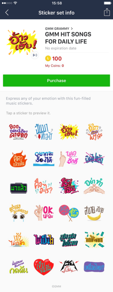 LINE ประเทศไทยเปิดตัวสติกเกอร์แบบใหม่ล่าสุด “Music Sticker” จัดใหญ่เซตแรก จับมือ จีเอ็มเอ็ม แกรมมี่ สร้างสรรค์สติกเกอร์ท่อนฮุกเพลงฮิตรวมประโยคเด็ดสุดจี๊ดโดนใจผู้ใช้ทุกรุ่นทุกวัย ให้ใช้สติกเกอร์แทนคำพูดและความรู้สึก สร้างสีสันในการสื่อสารให้สนุกยิ่งขึ้น