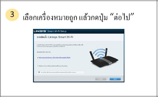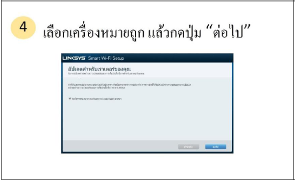 - เข้าหน้าเพจ อัพเดทสำหรับเราเตอร์ของคุณ เลือกเครื่องหมายถูก แล้วกดปุ่ม “ต่อไป”