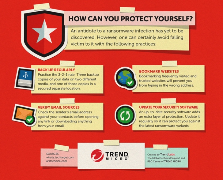 Ransomware เป็นมัลแวร์ที่ซับซ้อนเป็นพิเศษ และแม้ว่าผู้เชี่ยวชาญอาจรู้วิธีการปิดใช้งานมัลแวร์ประเภทนี้ แต่ผู้ใช้ทั่วไปก็สามารถป้องกันปัญหาด้วยการปฏิบัติตามมาตรการด้านความปลอดภัย พึงระลึกไว้ว่าในบางกรณี อาจไม่สามารถทำการกู้คืนระบบโดยไม่จ่ายค่าไถ่ และนี่คือเหตุผลที่เราควรจะแบ็คอัพไฟล์ข้อมูลอย่างสม่ำเสมอเพื่อป้องกันความสูญเสีย