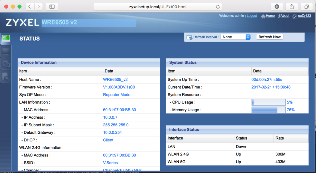 การใช้งานก็ง่ายนิดเดียวแค่เสียบตัว Zyxel WRE6505 v2 เข้ากับปลั๊กไฟในบ้านจากนั้นเข้าไปตั้งค่าการทำงานผ่านเว็บบราวเซอร์โดยพิมพ์ zyxelsetup หรือ zyxelsetup.local สำหรับเครื่อง MAC และ iPhone/iPad ในช่อง URL จะเข้าไปยังหน้าตั้งค่าของตัว Zyxel WRE6505 v2 ที่ดูเรียบง่ายไม่ซับซ้อนจะได้ตั้งค่าการทำงานต่างๆ ได้อย่างสะดวก